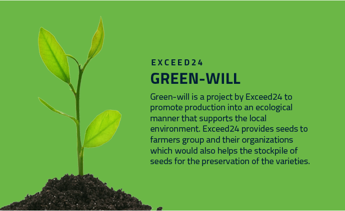Go green is a circular economy concept by Exceed24 to make sure that the Sustainable Development Goals SDGs are considered in Agribusiness models. Exceed24 provides tools to groups and organizations (including customers, suppliers, government, and the community). For instance, sustainable value chain, eco-products, bio-fertilizer and organic food.